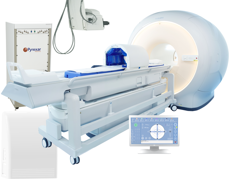 The addition of MRI (Magnetic Resonance Imaging) provides visualization allowing for accurate placement of the heat zone and assurance of target temperature optimization. Heating and imaging can be done simultaneously for live temperature management.